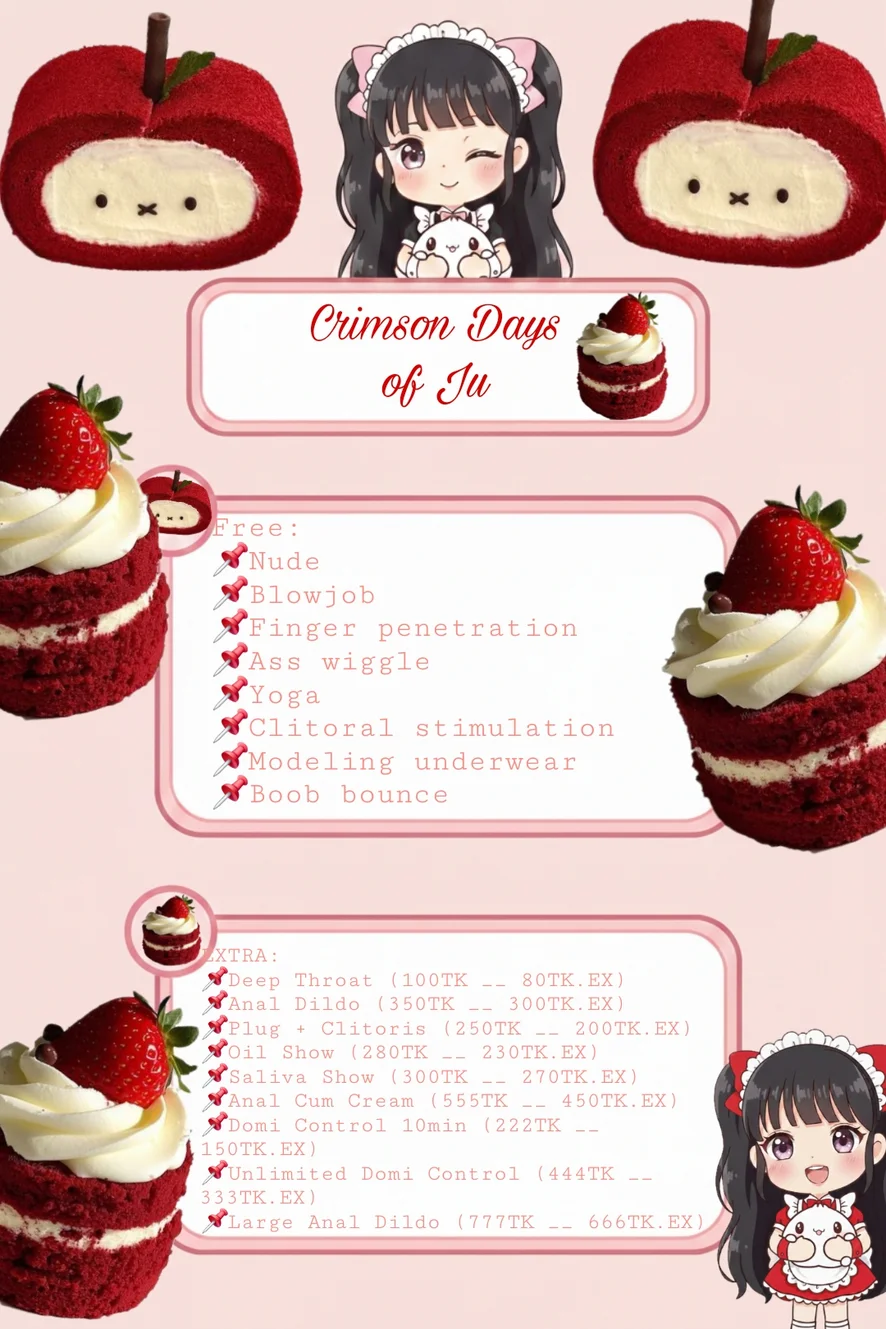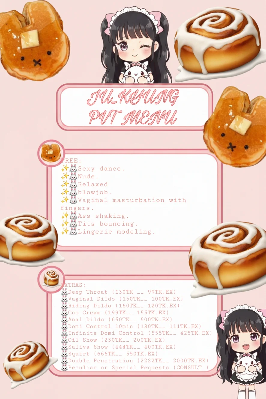 烹飪, Cosplay, 脫衣舞, 情境扮演, 瑜珈, 阿嘿顏, 狗爬式, 情色舞蹈, 口交, 無上裝, 乳交, 吸煙, 打屁股, 打飛機, 扭扭樂, 精油表演, 指交, 撸管指導, 羞辱